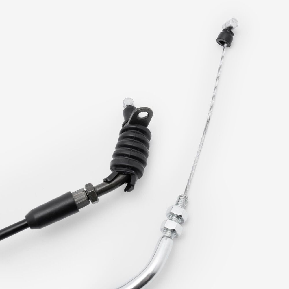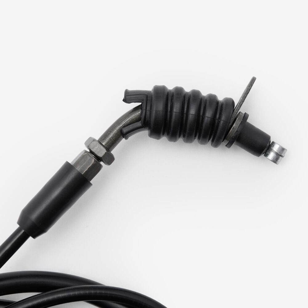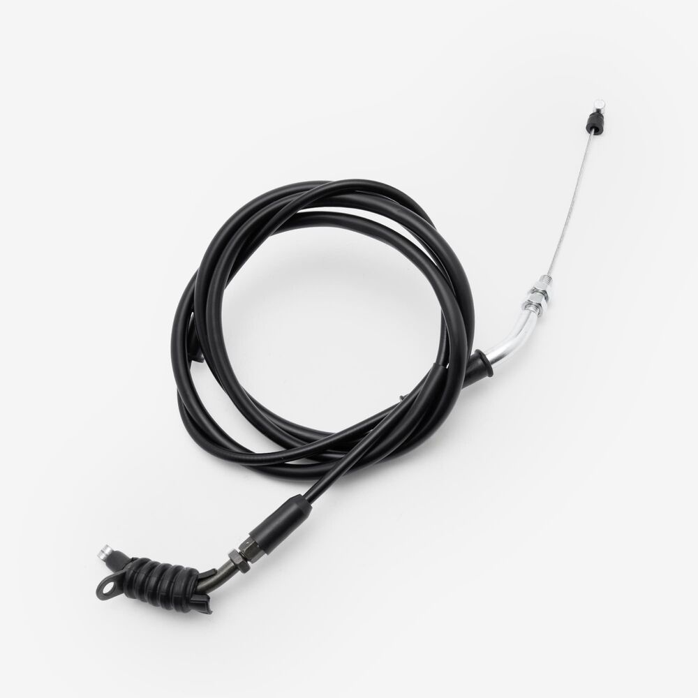 The throttle cable in a motorcycle is a flexible, wire-reinforced cable that connects the throttle grip to the throttle body or carburetor. It transmits the rider's input from twisting the throttle grip to the engine’s air intake system, allowing for precise control of engine power and acceleration. The throttle cable is designed to be durable and resistant to wear, providing smooth and reliable operation. Proper adjustment and maintenance of the throttle cable are essential for ensuring responsive throttle control and optimal engine performance.