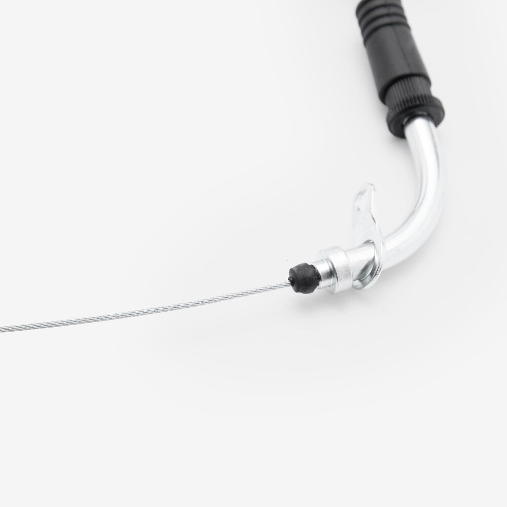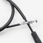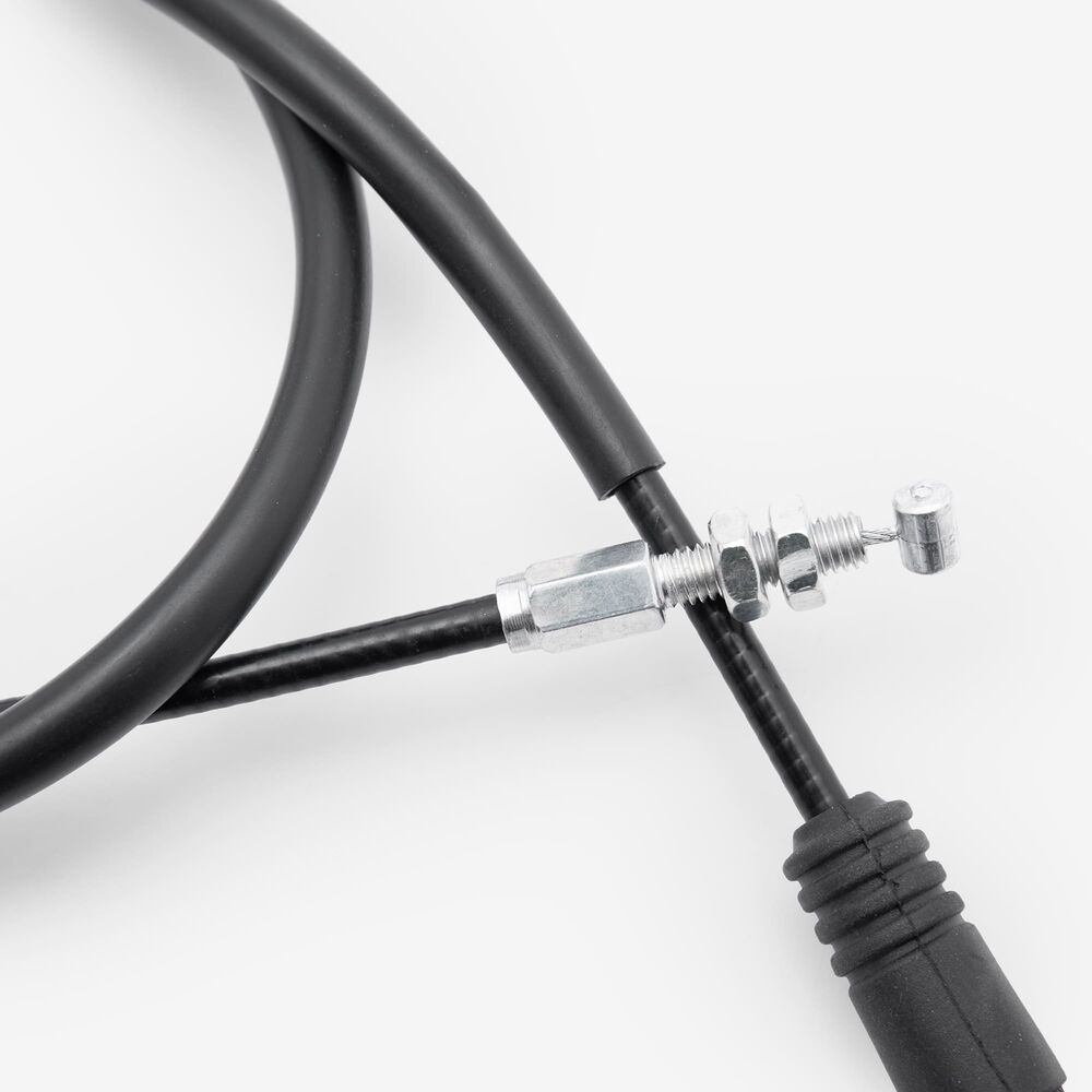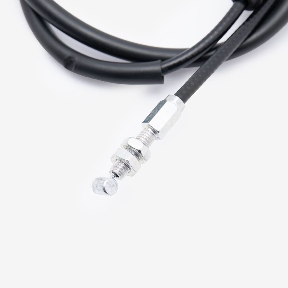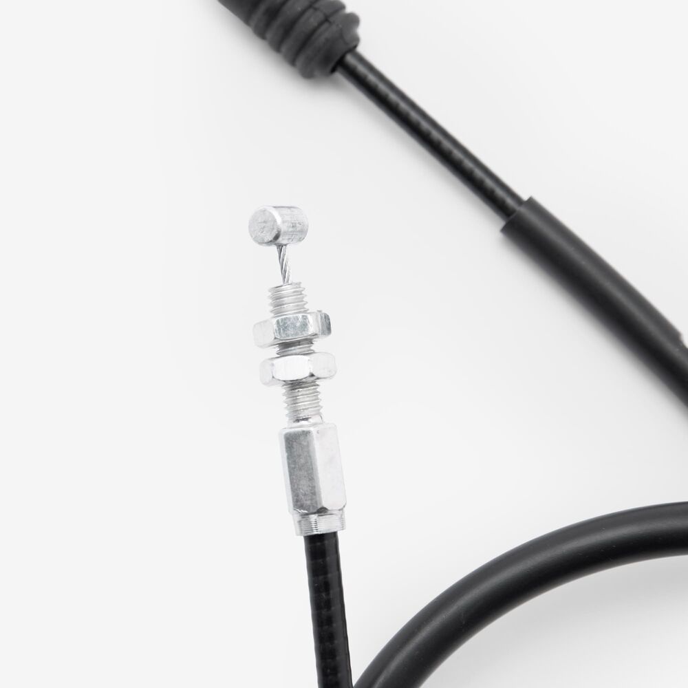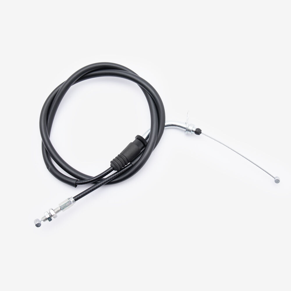 The throttle cable in a motorcycle is a flexible, wire-reinforced cable that connects the throttle grip to the throttle body or carburetor. It transmits the rider's input from twisting the throttle grip to the engine’s air intake system, allowing for precise control of engine power and acceleration. The throttle cable is designed to be durable and resistant to wear, providing smooth and reliable operation. Proper adjustment and maintenance of the throttle cable are essential for ensuring responsive throttle control and optimal engine performance.