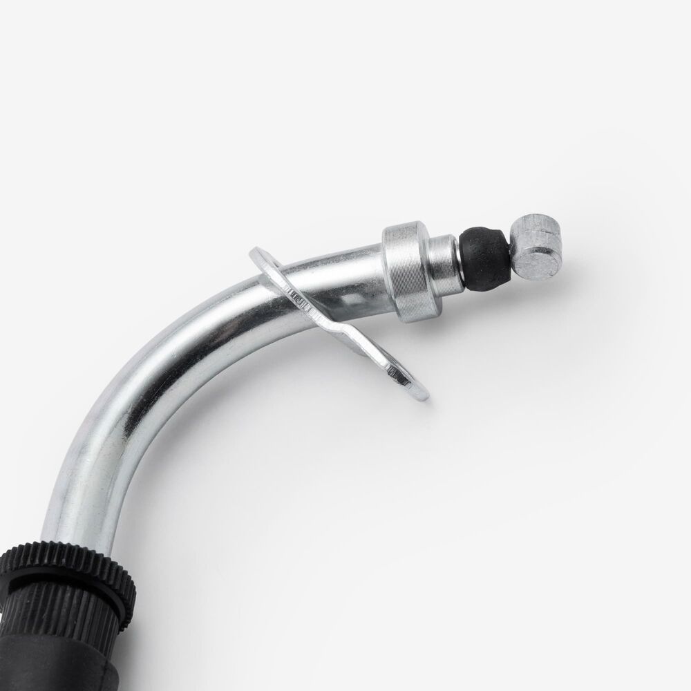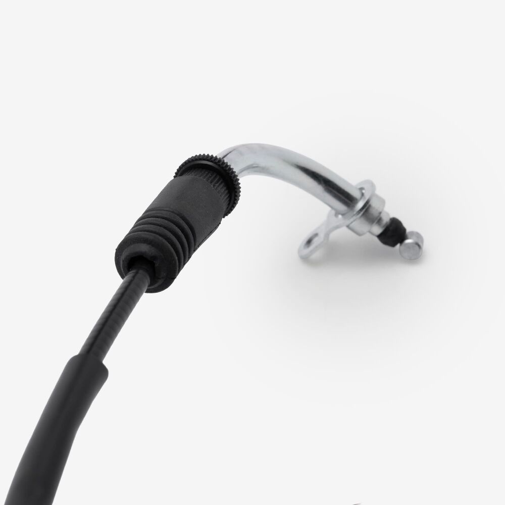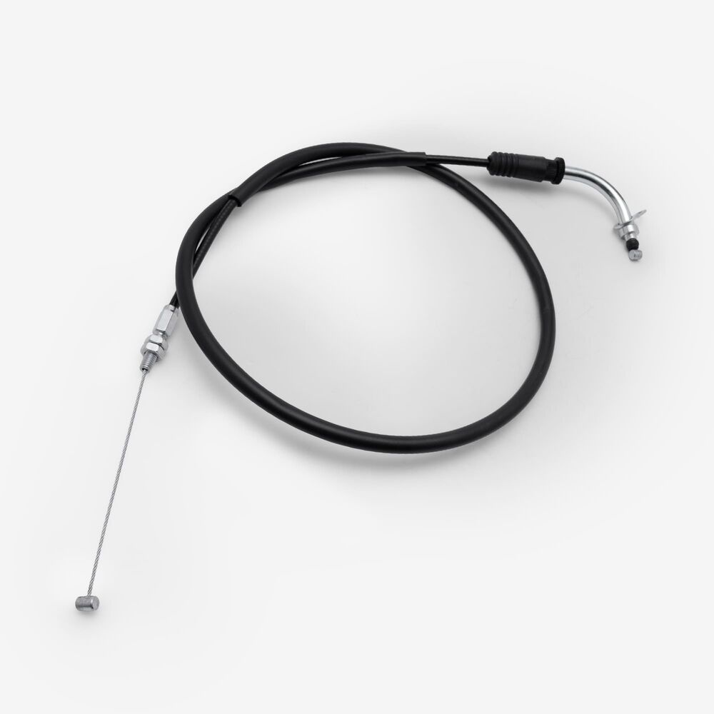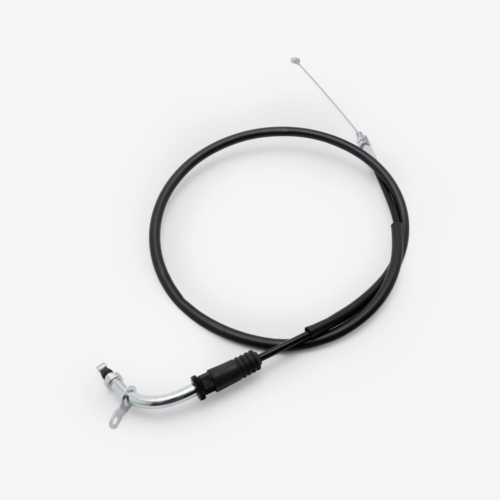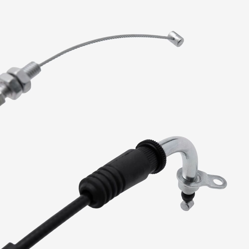 The throttle cable in a motorcycle is a flexible, wire-reinforced cable that connects the throttle grip to the throttle body or carburetor. It transmits the rider's input from twisting the throttle grip to the engine’s air intake system, allowing for precise control of engine power and acceleration. The throttle cable is designed to be durable and resistant to wear, providing smooth and reliable operation. Proper adjustment and maintenance of the throttle cable are essential for ensuring responsive throttle control and optimal engine performance.