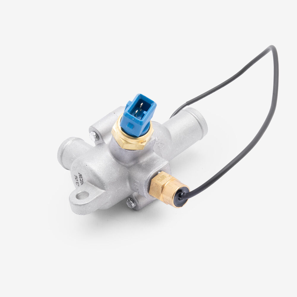 A motorcycle thermostat is a component in the engine's cooling system that regulates the flow of coolant to maintain the engine at its optimal operating temperature. It is located between the engine and the radiator. The thermostat opens and closes based on the engine temperature, allowing coolant to flow through the radiator when the engine is hot and restricting it when the engine is cold. This helps prevent overheating, ensures efficient engine performance, and reduces emissions by allowing the engine to reach and maintain its ideal temperature quickly.