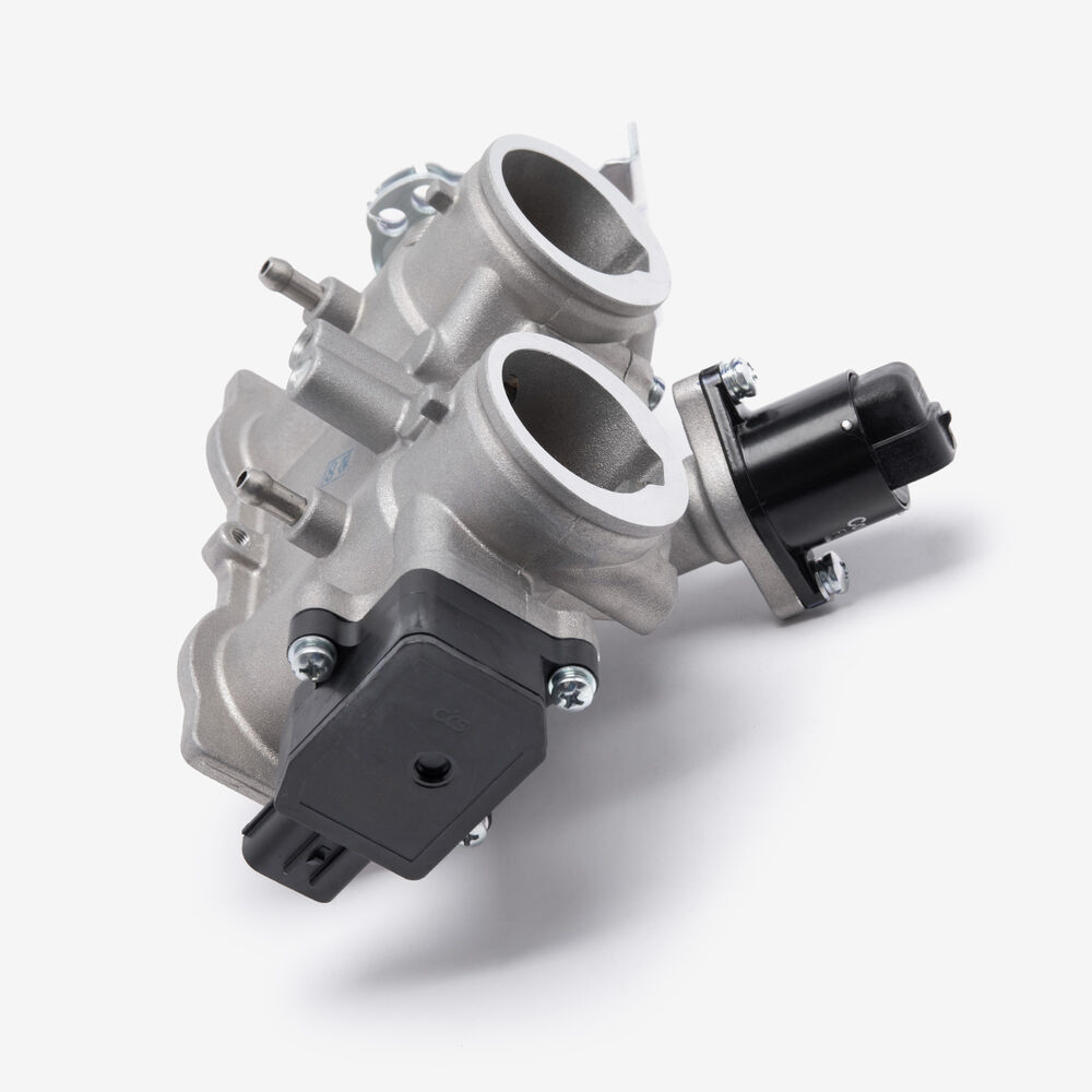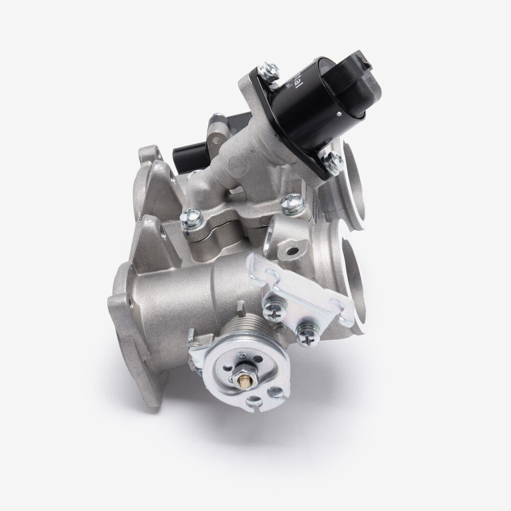 The throttle body is a critical component in a motorcycle’s fuel injection system. It controls the amount of air entering the engine by adjusting the throttle plate or valve based on the rider's input through the throttle grip. The throttle body regulates airflow, which, combined with fuel injected by the system, determines engine performance and responsiveness. Typically housed in a chamber with sensors and actuators, the throttle body ensures smooth acceleration, efficient fuel consumption, and optimal engine performance by precisely managing air intake.