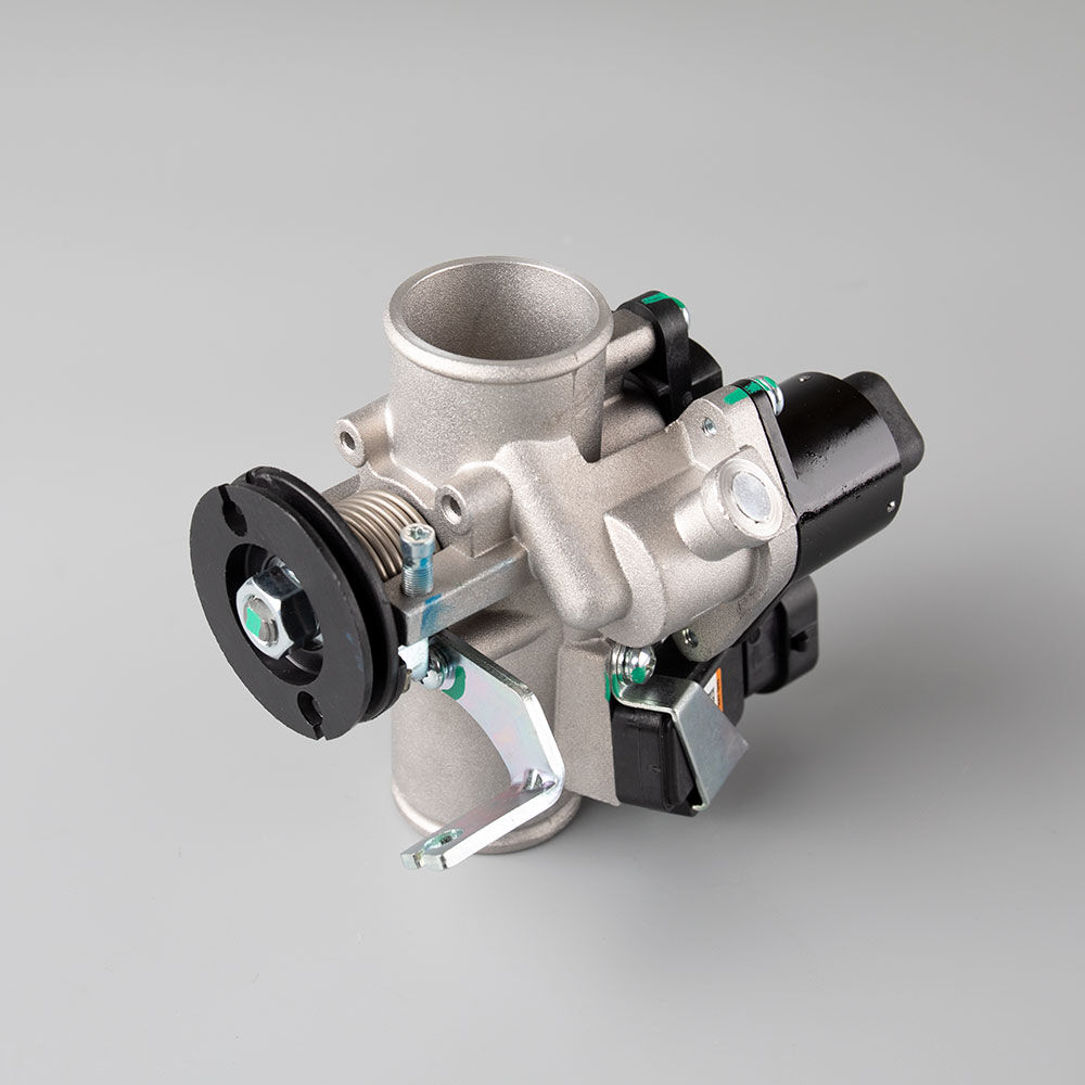 The throttle body is a critical component in a motorcycle’s fuel injection system. It controls the amount of air entering the engine by adjusting the throttle plate or valve based on the rider's input through the throttle grip. The throttle body regulates airflow, which, combined with fuel injected by the system, determines engine performance and responsiveness. Typically housed in a chamber with sensors and actuators, the throttle body ensures smooth acceleration, efficient fuel consumption, and optimal engine performance by precisely managing air intake.