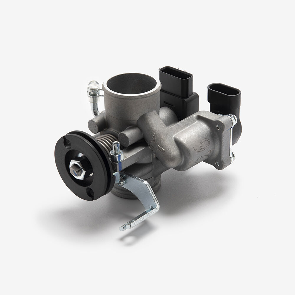 The throttle body is a critical component in a motorcycle’s fuel injection system. It controls the amount of air entering the engine by adjusting the throttle plate or valve based on the rider's input through the throttle grip. The throttle body regulates airflow, which, combined with fuel injected by the system, determines engine performance and responsiveness. Typically housed in a chamber with sensors and actuators, the throttle body ensures smooth acceleration, efficient fuel consumption, and optimal engine performance by precisely managing air intake.