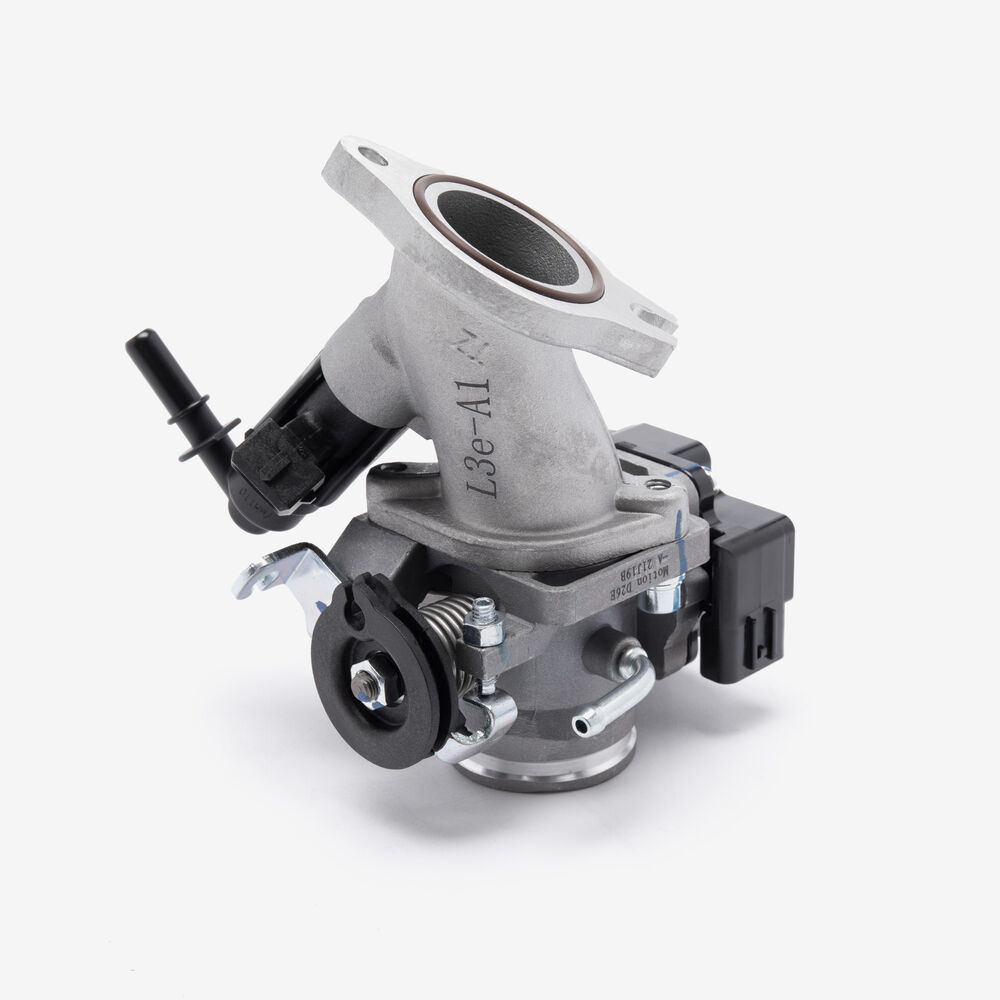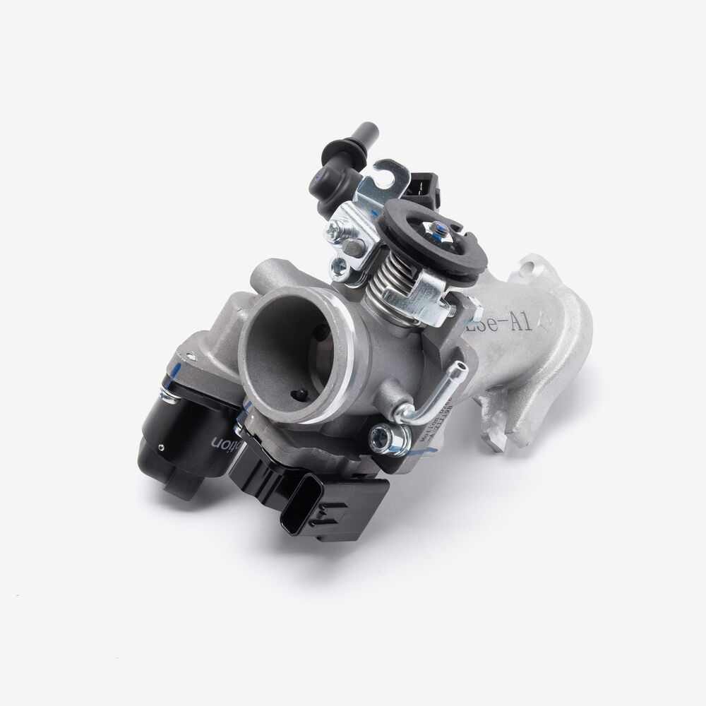 The throttle body is a critical component in a motorcycle’s fuel injection system. It controls the amount of air entering the engine by adjusting the throttle plate or valve based on the rider's input through the throttle grip. The throttle body regulates airflow, which, combined with fuel injected by the system, determines engine performance and responsiveness. Typically housed in a chamber with sensors and actuators, the throttle body ensures smooth acceleration, efficient fuel consumption, and optimal engine performance by precisely managing air intake.
