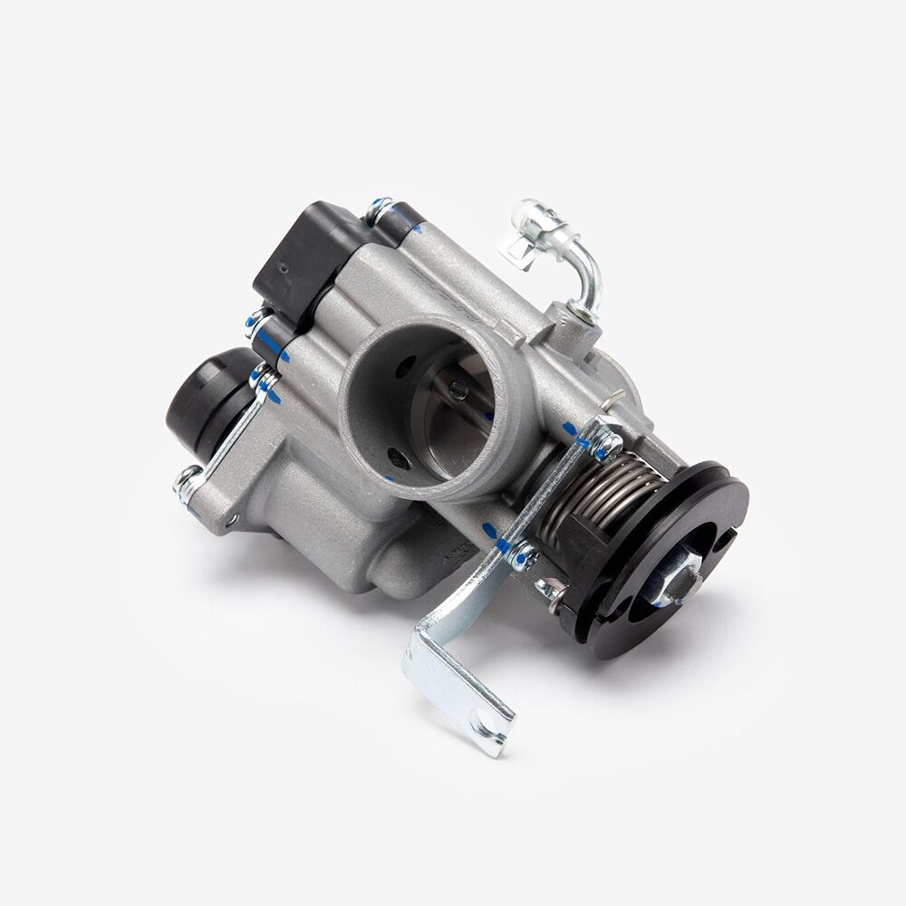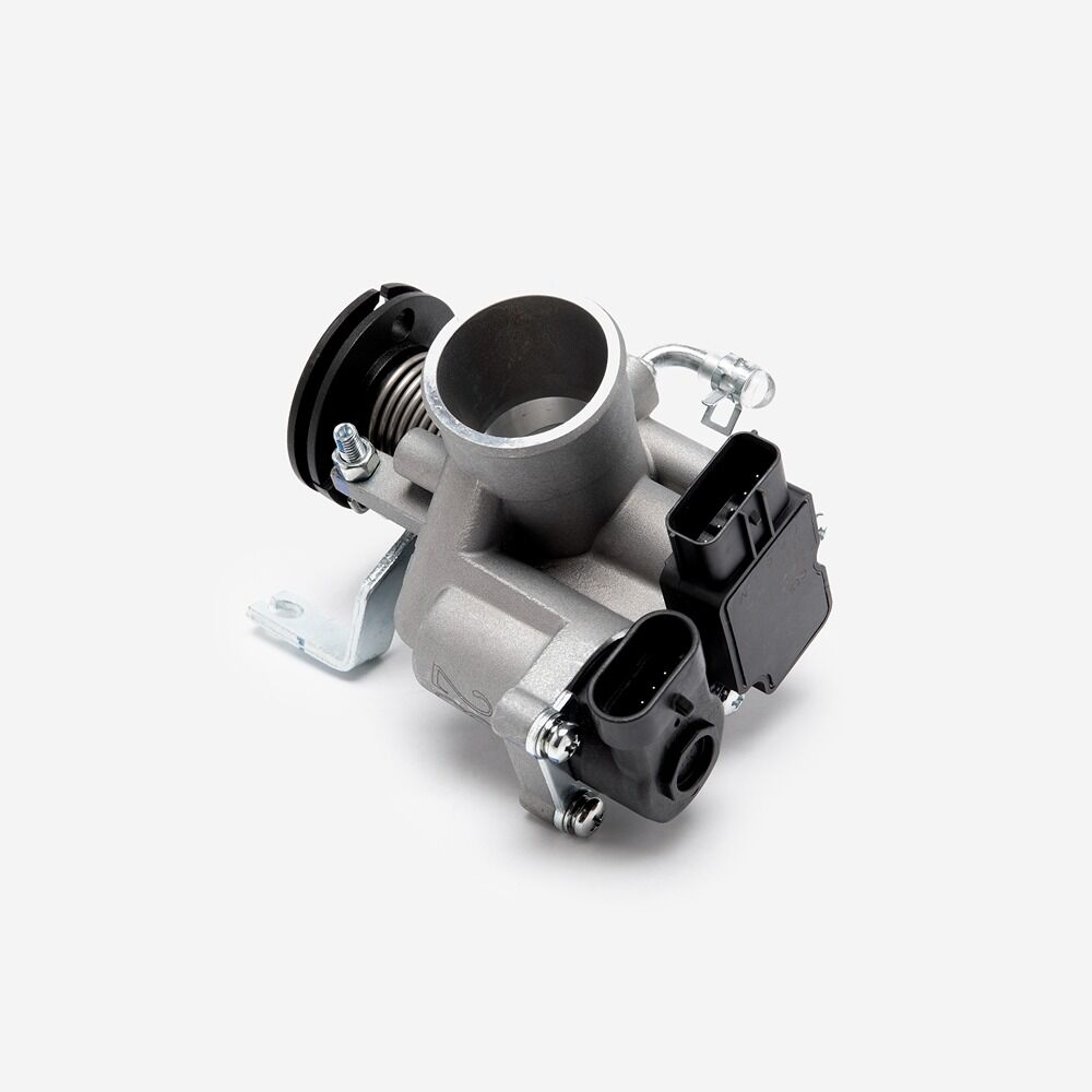 The throttle body is a critical component in a motorcycle’s fuel injection system. It controls the amount of air entering the engine by adjusting the throttle plate or valve based on the rider's input through the throttle grip. The throttle body regulates airflow, which, combined with fuel injected by the system, determines engine performance and responsiveness. Typically housed in a chamber with sensors and actuators, the throttle body ensures smooth acceleration, efficient fuel consumption, and optimal engine performance by precisely managing air intake.