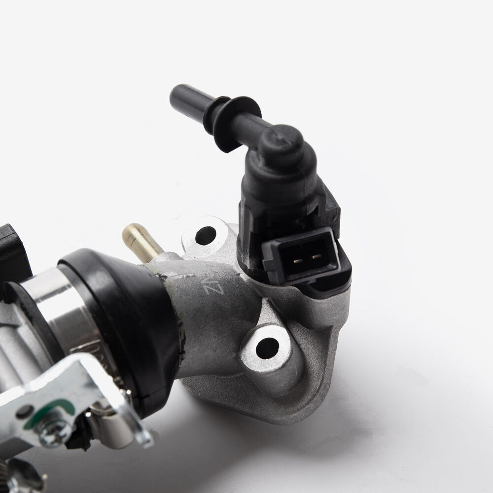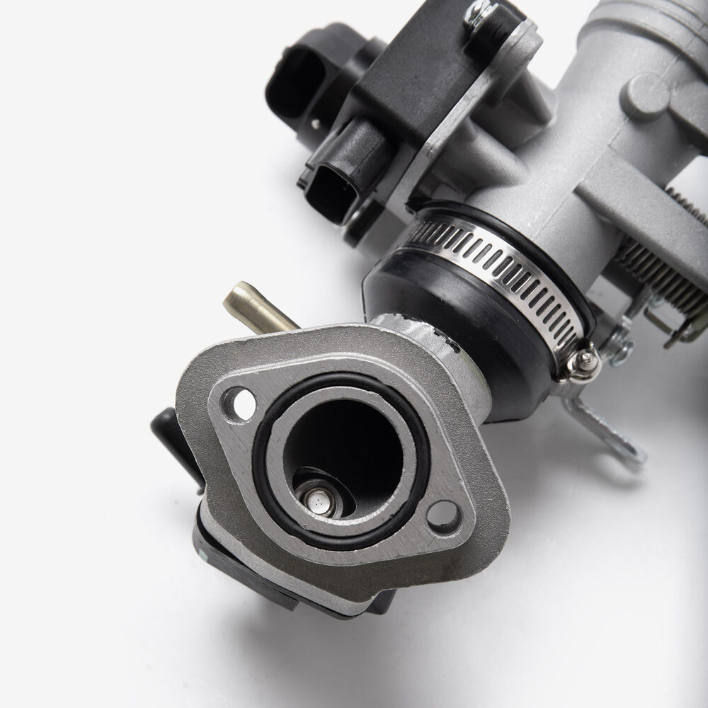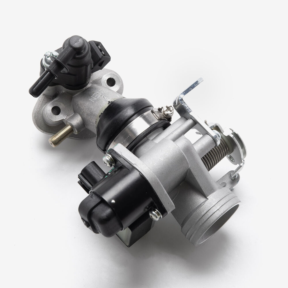 The throttle body is a critical component in a motorcycle’s fuel injection system. It controls the amount of air entering the engine by adjusting the throttle plate or valve based on the rider's input through the throttle grip. The throttle body regulates airflow, which, combined with fuel injected by the system, determines engine performance and responsiveness. Typically housed in a chamber with sensors and actuators, the throttle body ensures smooth acceleration, efficient fuel consumption, and optimal engine performance by precisely managing air intake.