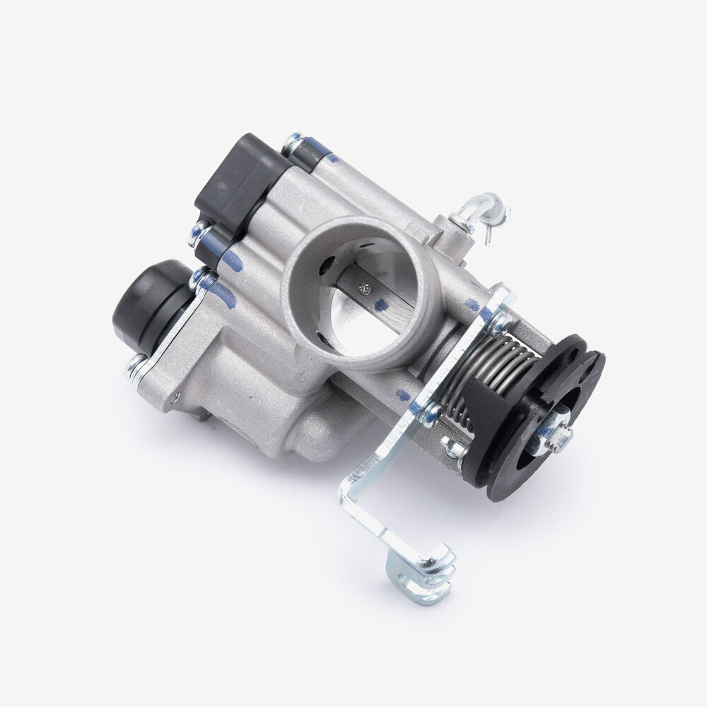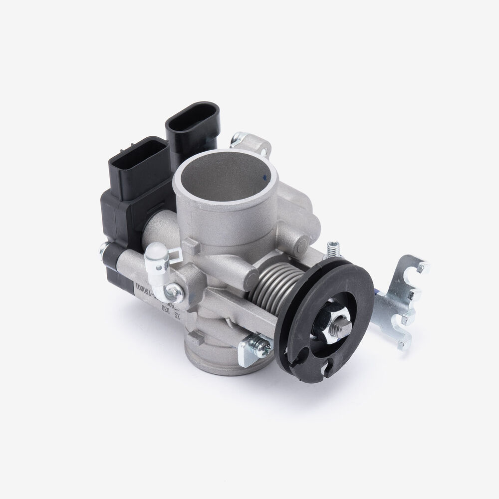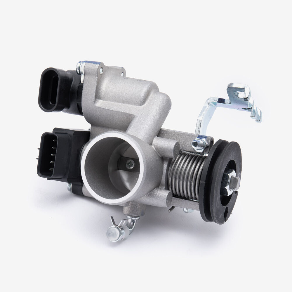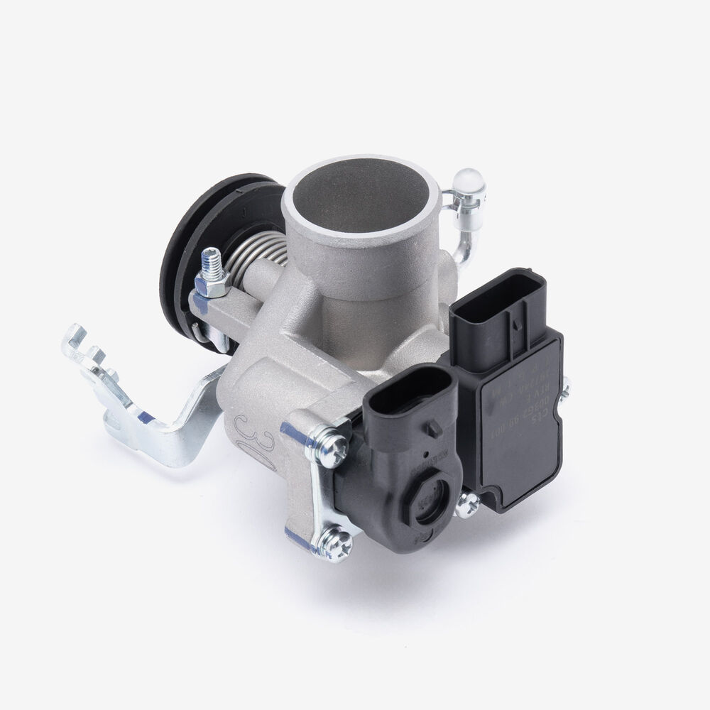 The throttle body is a critical component in a motorcycle’s fuel injection system. It controls the amount of air entering the engine by adjusting the throttle plate or valve based on the rider's input through the throttle grip. The throttle body regulates airflow, which, combined with fuel injected by the system, determines engine performance and responsiveness. Typically housed in a chamber with sensors and actuators, the throttle body ensures smooth acceleration, efficient fuel consumption, and optimal engine performance by precisely managing air intake.