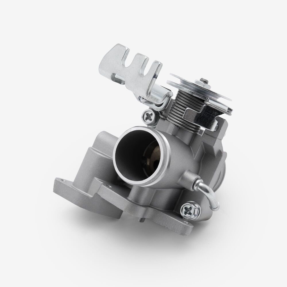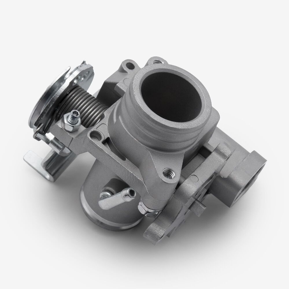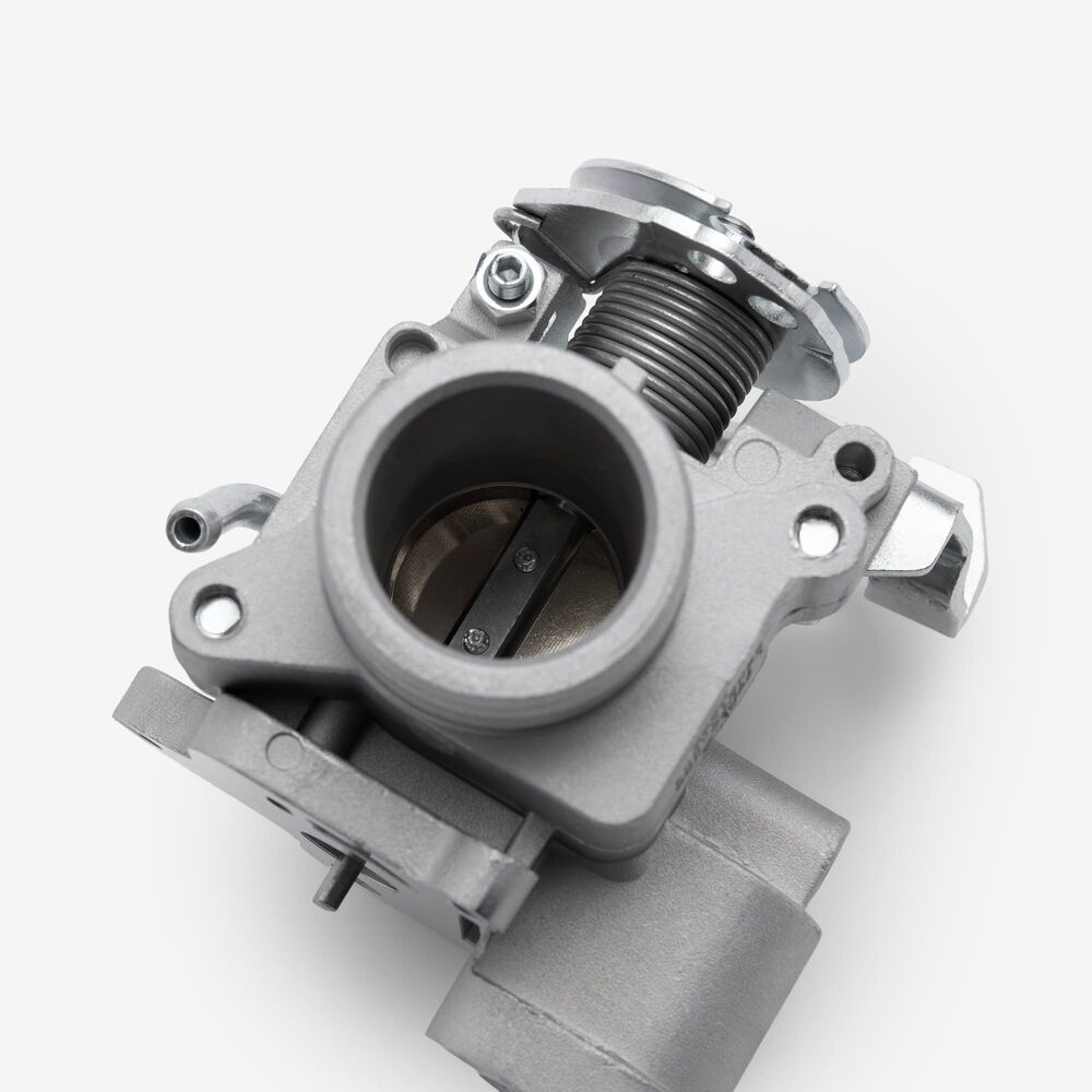 The throttle body is a critical component in a motorcycle’s fuel injection system. It controls the amount of air entering the engine by adjusting the throttle plate or valve based on the rider's input through the throttle grip. The throttle body regulates airflow, which, combined with fuel injected by the system, determines engine performance and responsiveness. Typically housed in a chamber with sensors and actuators, the throttle body ensures smooth acceleration, efficient fuel consumption, and optimal engine performance by precisely managing air intake.
