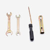 A motorcycle tool kit is a collection of essential tools designed for performing maintenance, repairs, and adjustments on a motorcycle. It typically includes items such as wrenches, screwdrivers, pliers, tire levers, a spark plug wrench, and sometimes a small socket set. The toolkit is compact and portable, allowing riders to carry it on their motorcycle for convenience during roadside repairs or maintenance. Having a well-organized and comprehensive tool kit is crucial for addressing mechanical issues and ensuring the motorcycle remains in good working condition.