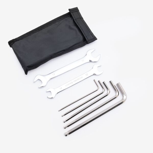 A motorcycle tool kit is a collection of essential tools designed for performing maintenance, repairs, and adjustments on a motorcycle. It typically includes items such as wrenches, screwdrivers, pliers, tire levers, a spark plug wrench, and sometimes a small socket set. The toolkit is compact and portable, allowing riders to carry it on their motorcycle for convenience during roadside repairs or maintenance. Having a well-organized and comprehensive tool kit is crucial for addressing mechanical issues and ensuring the motorcycle remains in good working condition.
