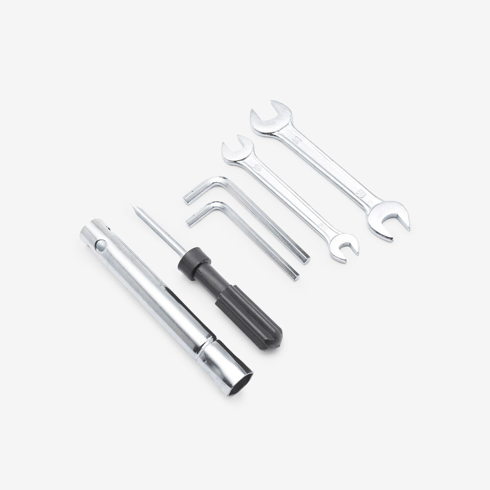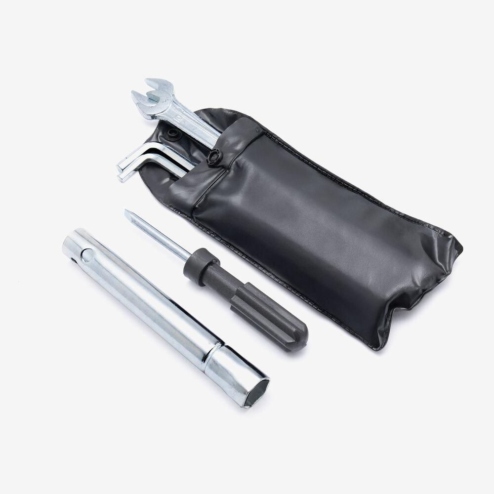 A motorcycle tool kit is a collection of essential tools designed for performing maintenance, repairs, and adjustments on a motorcycle. It typically includes items such as wrenches, screwdrivers, pliers, tire levers, a spark plug wrench, and sometimes a small socket set. The toolkit is compact and portable, allowing riders to carry it on their motorcycle for convenience during roadside repairs or maintenance. Having a well-organized and comprehensive tool kit is crucial for addressing mechanical issues and ensuring the motorcycle remains in good working condition.