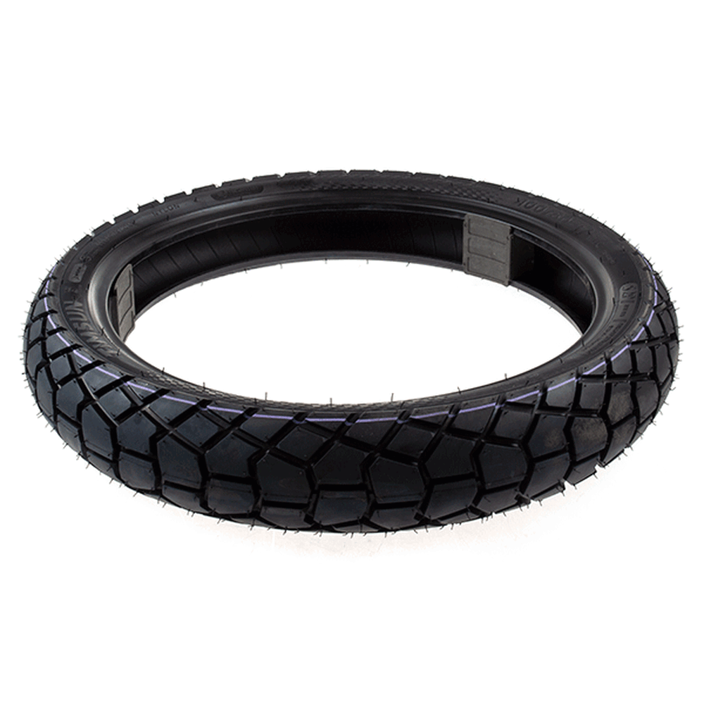 A motorcycle tire is a crucial component that provides traction, stability, and shock absorption for the motorcycle. It consists of several layers, including a rubber tread for grip, a reinforced carcass for structural strength, and inner linings to contain air or sealant. Motorcycle tires are designed for specific riding conditions, such as road, off-road, or sport, and are available in various sizes and tread patterns to match the motorcycle's performance and handling requirements. Proper tire maintenance, including regular checks for pressure and tread wear, is essential for safe and efficient riding.