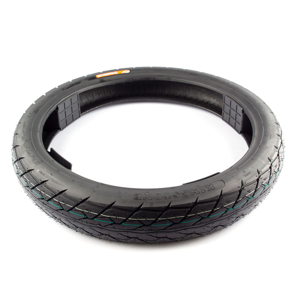 A motorcycle tire is a crucial component that provides traction, stability, and shock absorption for the motorcycle. It consists of several layers, including a rubber tread for grip, a reinforced carcass for structural strength, and inner linings to contain air or sealant. Motorcycle tires are designed for specific riding conditions, such as road, off-road, or sport, and are available in various sizes and tread patterns to match the motorcycle's performance and handling requirements. Proper tire maintenance, including regular checks for pressure and tread wear, is essential for safe and efficient riding.
