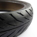 A motorcycle tire is a crucial component that provides traction, stability, and shock absorption for the motorcycle. It consists of several layers, including a rubber tread for grip, a reinforced carcass for structural strength, and inner linings to contain air or sealant. Motorcycle tires are designed for specific riding conditions, such as road, off-road, or sport, and are available in various sizes and tread patterns to match the motorcycle's performance and handling requirements. Proper tire maintenance, including regular checks for pressure and tread wear, is essential for safe and efficient riding.