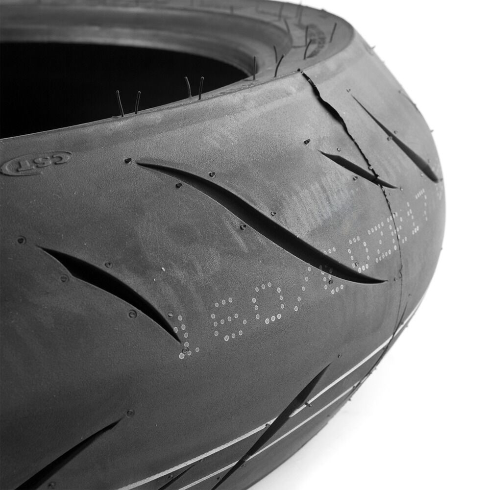 A motorcycle tire is a crucial component that provides traction, stability, and shock absorption for the motorcycle. It consists of several layers, including a rubber tread for grip, a reinforced carcass for structural strength, and inner linings to contain air or sealant. Motorcycle tires are designed for specific riding conditions, such as road, off-road, or sport, and are available in various sizes and tread patterns to match the motorcycle's performance and handling requirements. Proper tire maintenance, including regular checks for pressure and tread wear, is essential for safe and efficient riding.