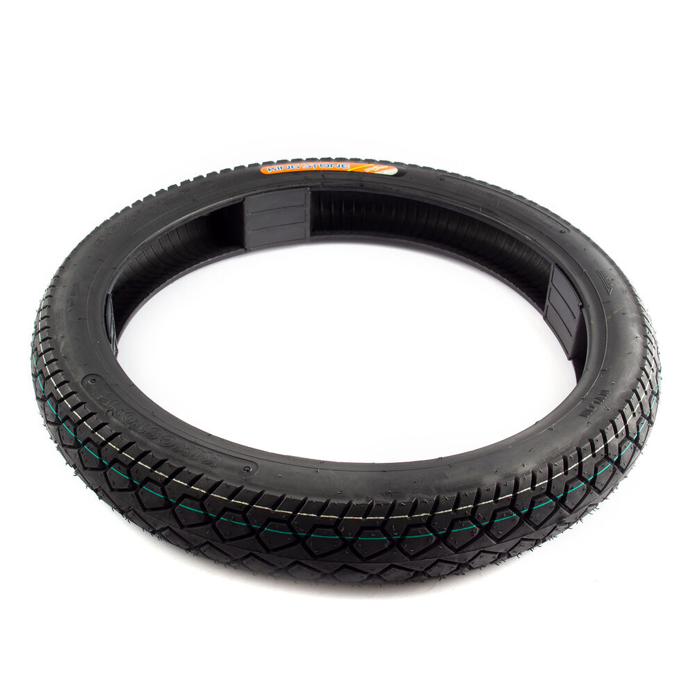 A motorcycle tire is a crucial component that provides traction, stability, and shock absorption for the motorcycle. It consists of several layers, including a rubber tread for grip, a reinforced carcass for structural strength, and inner linings to contain air or sealant. Motorcycle tires are designed for specific riding conditions, such as road, off-road, or sport, and are available in various sizes and tread patterns to match the motorcycle's performance and handling requirements. Proper tire maintenance, including regular checks for pressure and tread wear, is essential for safe and efficient riding.