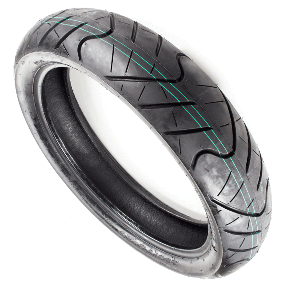 A motorcycle tire is a crucial component that provides traction, stability, and shock absorption for the motorcycle. It consists of several layers, including a rubber tread for grip, a reinforced carcass for structural strength, and inner linings to contain air or sealant. Motorcycle tires are designed for specific riding conditions, such as road, off-road, or sport, and are available in various sizes and tread patterns to match the motorcycle's performance and handling requirements. Proper tire maintenance, including regular checks for pressure and tread wear, is essential for safe and efficient riding.