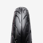 A motorcycle tire is a crucial component that provides traction, stability, and shock absorption for the motorcycle. It consists of several layers, including a rubber tread for grip, a reinforced carcass for structural strength, and inner linings to contain air or sealant. Motorcycle tires are designed for specific riding conditions, such as road, off-road, or sport, and are available in various sizes and tread patterns to match the motorcycle's performance and handling requirements. Proper tire maintenance, including regular checks for pressure and tread wear, is essential for safe and efficient riding.