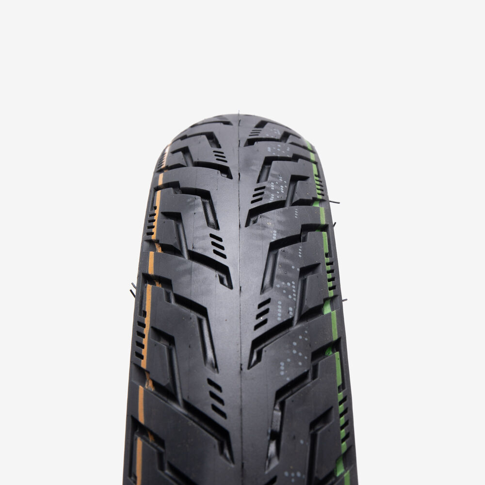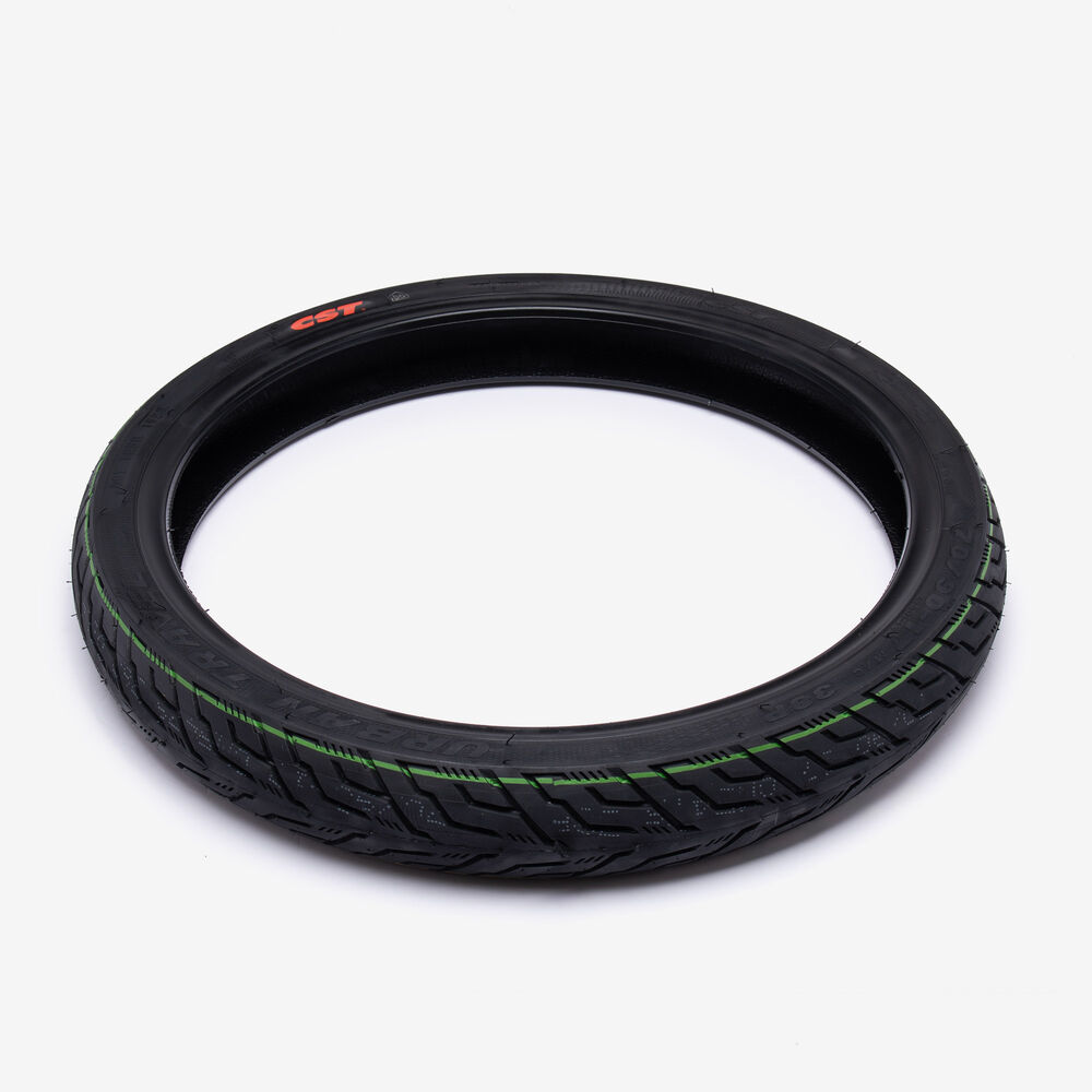 A motorcycle tire is a crucial component that provides traction, stability, and shock absorption for the motorcycle. It consists of several layers, including a rubber tread for grip, a reinforced carcass for structural strength, and inner linings to contain air or sealant. Motorcycle tires are designed for specific riding conditions, such as road, off-road, or sport, and are available in various sizes and tread patterns to match the motorcycle's performance and handling requirements. Proper tire maintenance, including regular checks for pressure and tread wear, is essential for safe and efficient riding.