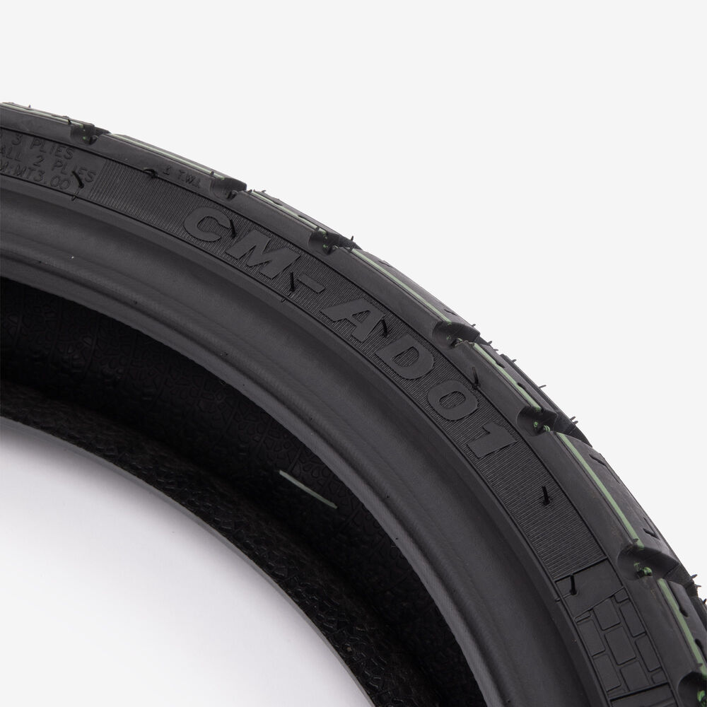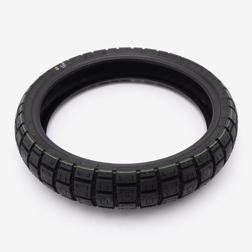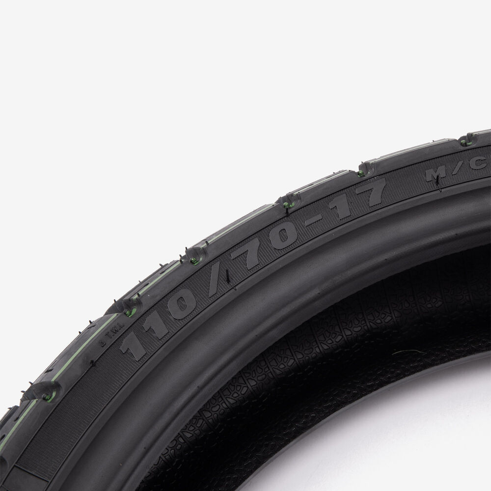 A motorcycle tire is a crucial component that provides traction, stability, and shock absorption for the motorcycle. It consists of several layers, including a rubber tread for grip, a reinforced carcass for structural strength, and inner linings to contain air or sealant. Motorcycle tires are designed for specific riding conditions, such as road, off-road, or sport, and are available in various sizes and tread patterns to match the motorcycle's performance and handling requirements. Proper tire maintenance, including regular checks for pressure and tread wear, is essential for safe and efficient riding.