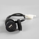 A USB port on a motorcycle is a convenient feature that allows riders to charge electronic devices, such as smartphones, GPS units, or other accessories, while on the go. Typically integrated into the motorcycle's electrical system, the USB port is often mounted in a weather-resistant enclosure to protect it from the elements. It provides a 5-volt output, similar to standard USB ports found in vehicles and home electronics, making it easy to keep devices powered and accessible during rides.