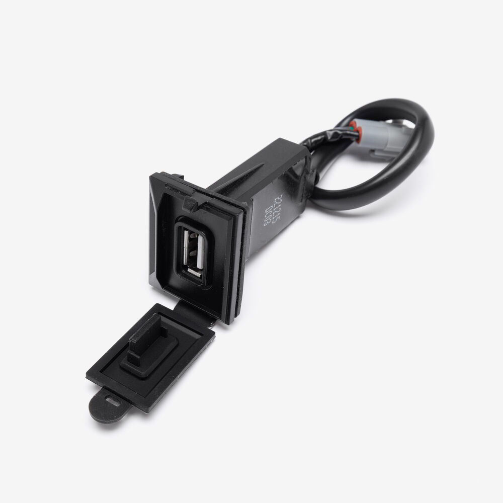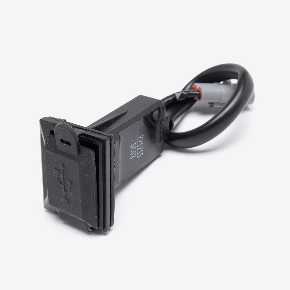 A USB port on a motorcycle is a convenient feature that allows riders to charge electronic devices, such as smartphones, GPS units, or other accessories, while on the go. Typically integrated into the motorcycle's electrical system, the USB port is often mounted in a weather-resistant enclosure to protect it from the elements. It provides a 5-volt output, similar to standard USB ports found in vehicles and home electronics, making it easy to keep devices powered and accessible during rides.