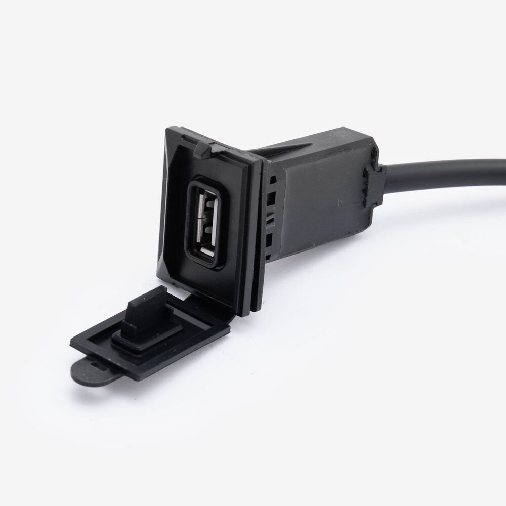 A USB port on a motorcycle is a convenient feature that allows riders to charge electronic devices, such as smartphones, GPS units, or other accessories, while on the go. Typically integrated into the motorcycle's electrical system, the USB port is often mounted in a weather-resistant enclosure to protect it from the elements. It provides a 5-volt output, similar to standard USB ports found in vehicles and home electronics, making it easy to keep devices powered and accessible during rides.