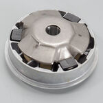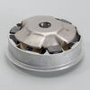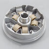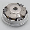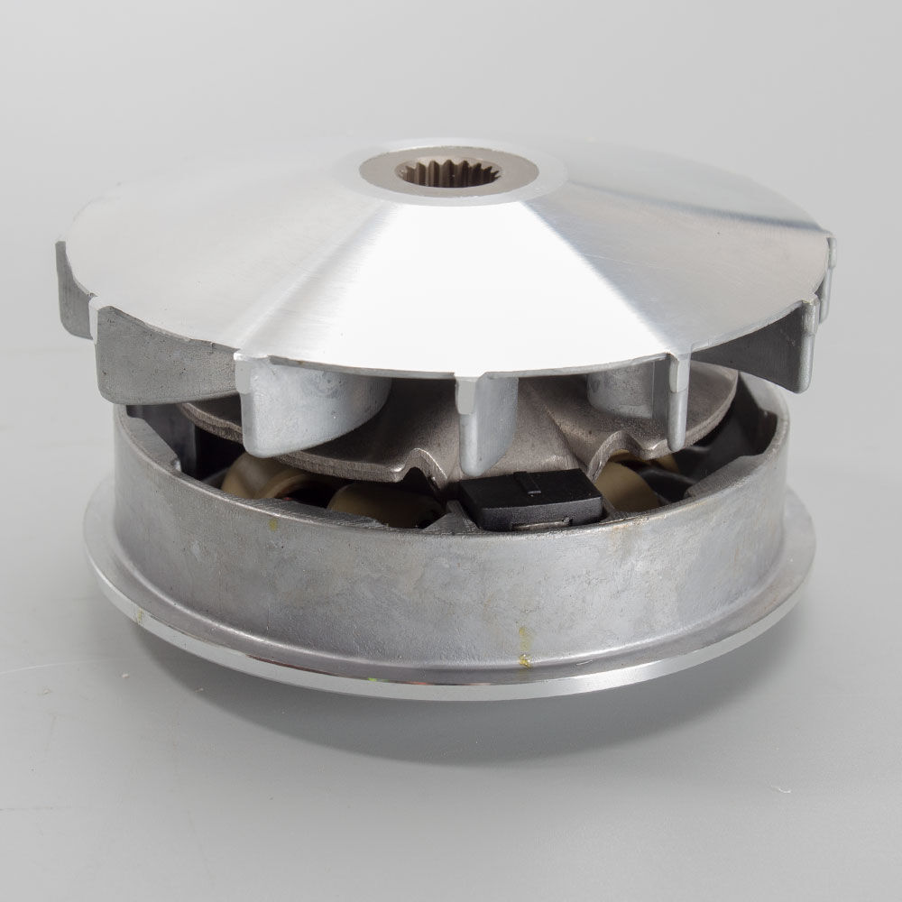 A variator is a component in a motorcycle's continuously variable transmission (CVT) system, commonly found in scooters and some automatic motorcycles. It is responsible for adjusting the gear ratio smoothly and continuously as the vehicle accelerates or decelerates. The variator consists of a set of adjustable pulleys and weights that change their position relative to each other, altering the diameter of the pulley and thus the gear ratio. This allows for seamless acceleration and efficient power delivery without the need for manual gear changes. The variator helps optimize engine performance and fuel efficiency by providing a range of gear ratios for varying riding conditions.