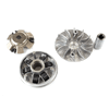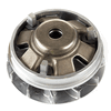 A variator is a component in a motorcycle's continuously variable transmission (CVT) system, commonly found in scooters and some automatic motorcycles. It is responsible for adjusting the gear ratio smoothly and continuously as the vehicle accelerates or decelerates. The variator consists of a set of adjustable pulleys and weights that change their position relative to each other, altering the diameter of the pulley and thus the gear ratio. This allows for seamless acceleration and efficient power delivery without the need for manual gear changes. The variator helps optimize engine performance and fuel efficiency by providing a range of gear ratios for varying riding conditions.