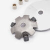 A variator is a component in a motorcycle's continuously variable transmission (CVT) system, commonly found in scooters and some automatic motorcycles. It is responsible for adjusting the gear ratio smoothly and continuously as the vehicle accelerates or decelerates. The variator consists of a set of adjustable pulleys and weights that change their position relative to each other, altering the diameter of the pulley and thus the gear ratio. This allows for seamless acceleration and efficient power delivery without the need for manual gear changes. The variator helps optimize engine performance and fuel efficiency by providing a range of gear ratios for varying riding conditions.