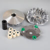 A variator is a component in a motorcycle's continuously variable transmission (CVT) system, commonly found in scooters and some automatic motorcycles. It is responsible for adjusting the gear ratio smoothly and continuously as the vehicle accelerates or decelerates. The variator consists of a set of adjustable pulleys and weights that change their position relative to each other, altering the diameter of the pulley and thus the gear ratio. This allows for seamless acceleration and efficient power delivery without the need for manual gear changes. The variator helps optimize engine performance and fuel efficiency by providing a range of gear ratios for varying riding conditions.