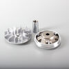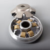 A variator is a component in a motorcycle's continuously variable transmission (CVT) system, commonly found in scooters and some automatic motorcycles. It is responsible for adjusting the gear ratio smoothly and continuously as the vehicle accelerates or decelerates. The variator consists of a set of adjustable pulleys and weights that change their position relative to each other, altering the diameter of the pulley and thus the gear ratio. This allows for seamless acceleration and efficient power delivery without the need for manual gear changes. The variator helps optimize engine performance and fuel efficiency by providing a range of gear ratios for varying riding conditions.