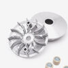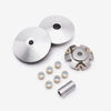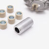 A variator is a component in a motorcycle's continuously variable transmission (CVT) system, commonly found in scooters and some automatic motorcycles. It is responsible for adjusting the gear ratio smoothly and continuously as the vehicle accelerates or decelerates. The variator consists of a set of adjustable pulleys and weights that change their position relative to each other, altering the diameter of the pulley and thus the gear ratio. This allows for seamless acceleration and efficient power delivery without the need for manual gear changes. The variator helps optimize engine performance and fuel efficiency by providing a range of gear ratios for varying riding conditions.