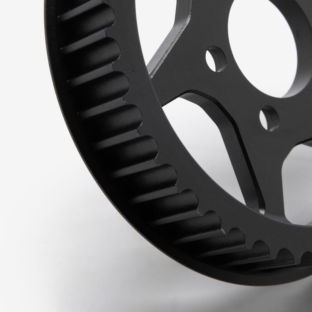 A variator pulley is a component of a motorcycle's continuously variable transmission (CVT) system. It adjusts the gear ratio automatically to match engine speed with road speed, optimizing performance and fuel efficiency. The variator pulley consists of two main parts: the drive pulley and the driven pulley. As the engine speed changes, the variator pulley alters the distance between these two pulleys, effectively changing the gear ratio. This allows for smooth acceleration and deceleration without the need for manual gear shifting.