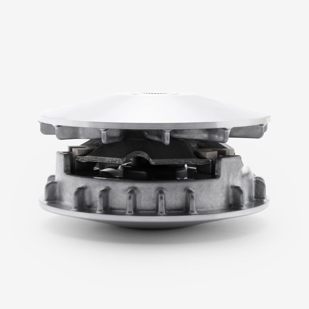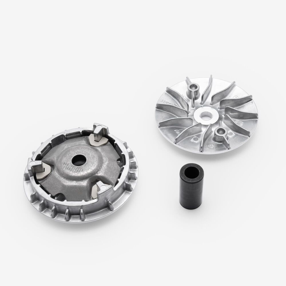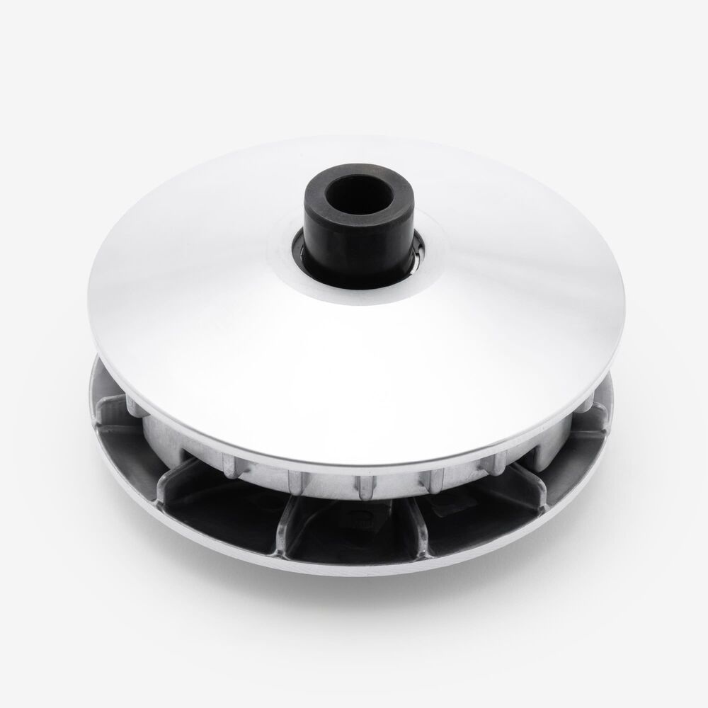 A variator pulley is a component of a motorcycle's continuously variable transmission (CVT) system. It adjusts the gear ratio automatically to match engine speed with road speed, optimizing performance and fuel efficiency. The variator pulley consists of two main parts: the drive pulley and the driven pulley. As the engine speed changes, the variator pulley alters the distance between these two pulleys, effectively changing the gear ratio. This allows for smooth acceleration and deceleration without the need for manual gear shifting.