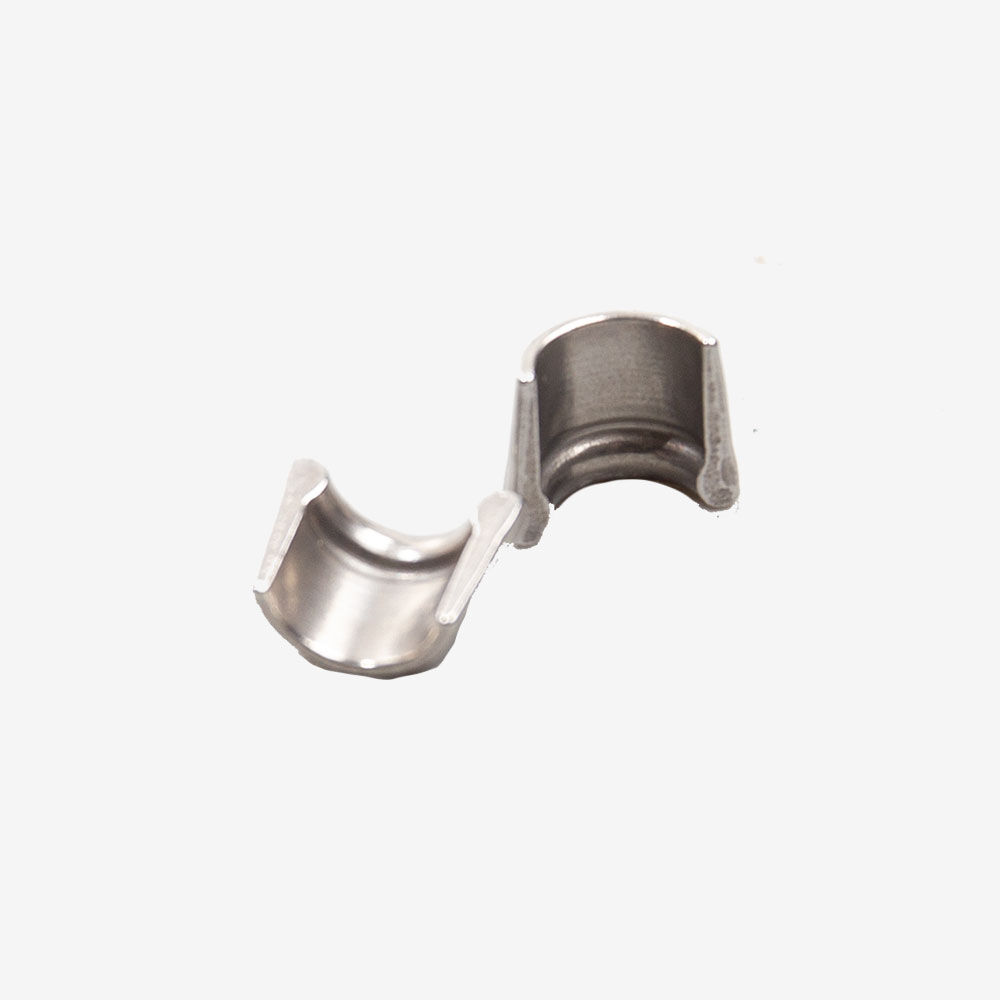 Valve collets, also known as valve keepers or valve locks, are small, wedge-shaped components used to secure the valve spring retainer to the valve stem. They fit into grooves on the valve stem and are compressed by the valve spring retainer to hold the spring in place. Valve collets ensure that the valve assembly remains securely in position, allowing for precise valve operation and maintaining correct valve timing. Made from durable materials like steel or hardened alloys, they are essential for the reliable performance of the engine's valve train.