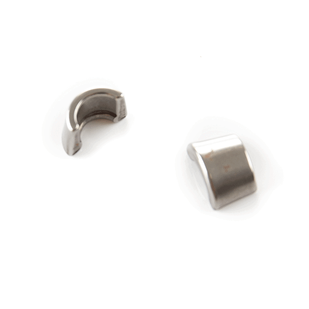Valve collets, also known as valve keepers or valve locks, are small, wedge-shaped components used to secure the valve spring retainer to the valve stem. They fit into grooves on the valve stem and are compressed by the valve spring retainer to hold the spring in place. Valve collets ensure that the valve assembly remains securely in position, allowing for precise valve operation and maintaining correct valve timing. Made from durable materials like steel or hardened alloys, they are essential for the reliable performance of the engine's valve train.