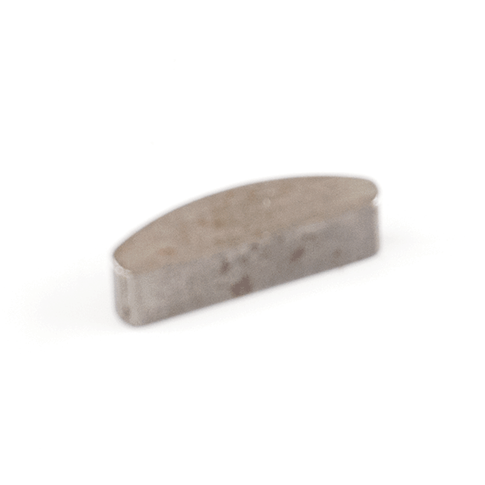 A Woodruff key is a small, semi-circular metal component used to secure rotating parts to a shaft. It fits into a corresponding keyway in both the shaft and the hub or gear, preventing relative movement between the two components. This ensures that the rotational force is transmitted effectively. Woodruff keys are commonly used in various mechanical assemblies, including motorcycle engines, to maintain alignment and proper function of gears, pulleys, and other rotating parts.