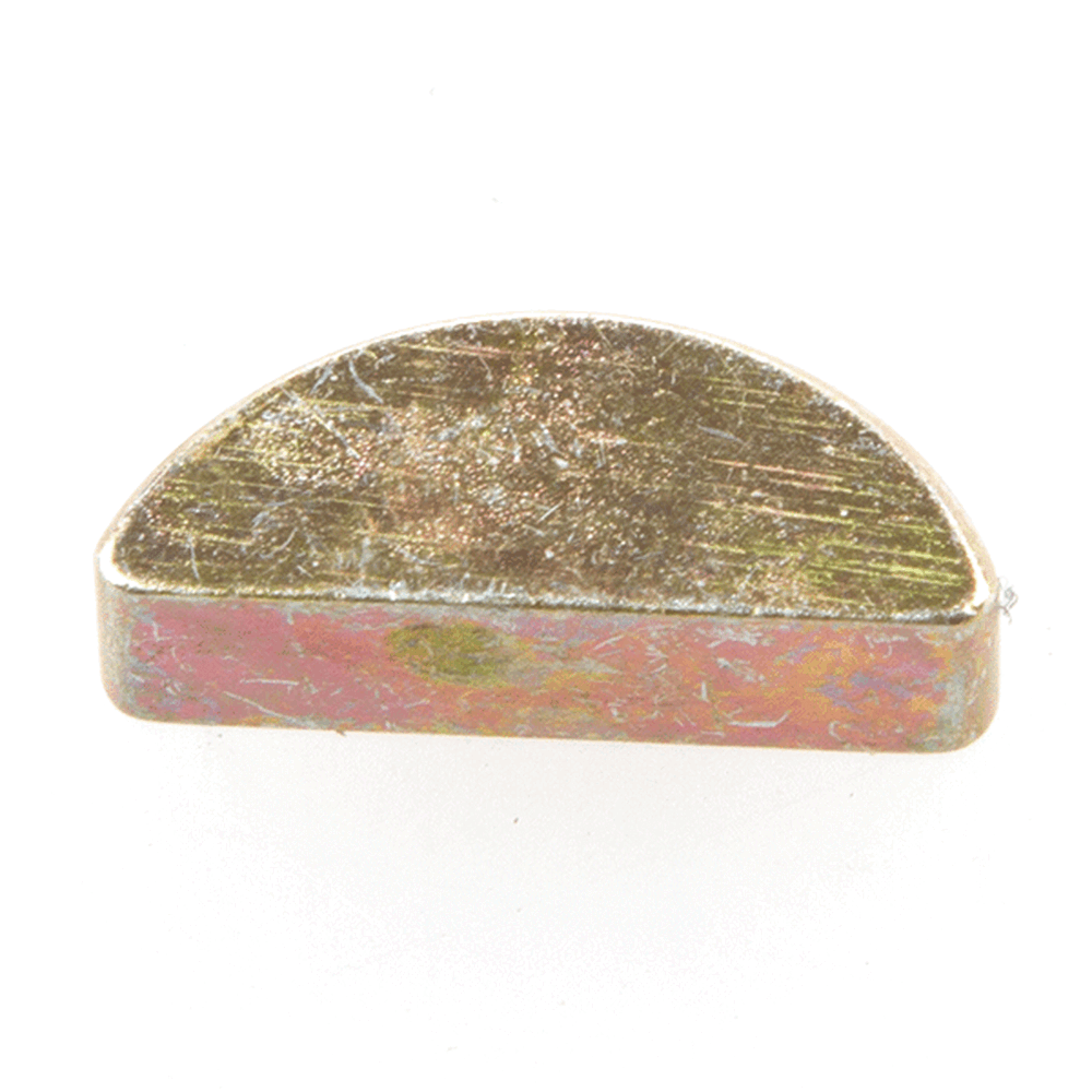 A Woodruff key is a small, semi-circular metal component used to secure rotating parts to a shaft. It fits into a corresponding keyway in both the shaft and the hub or gear, preventing relative movement between the two components. This ensures that the rotational force is transmitted effectively. Woodruff keys are commonly used in various mechanical assemblies, including motorcycle engines, to maintain alignment and proper function of gears, pulleys, and other rotating parts.