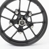• Hub: The central part of the wheel that contains the axle and often houses the bearings. It connects the wheel to the motorcycle's suspension and drivetrain.