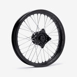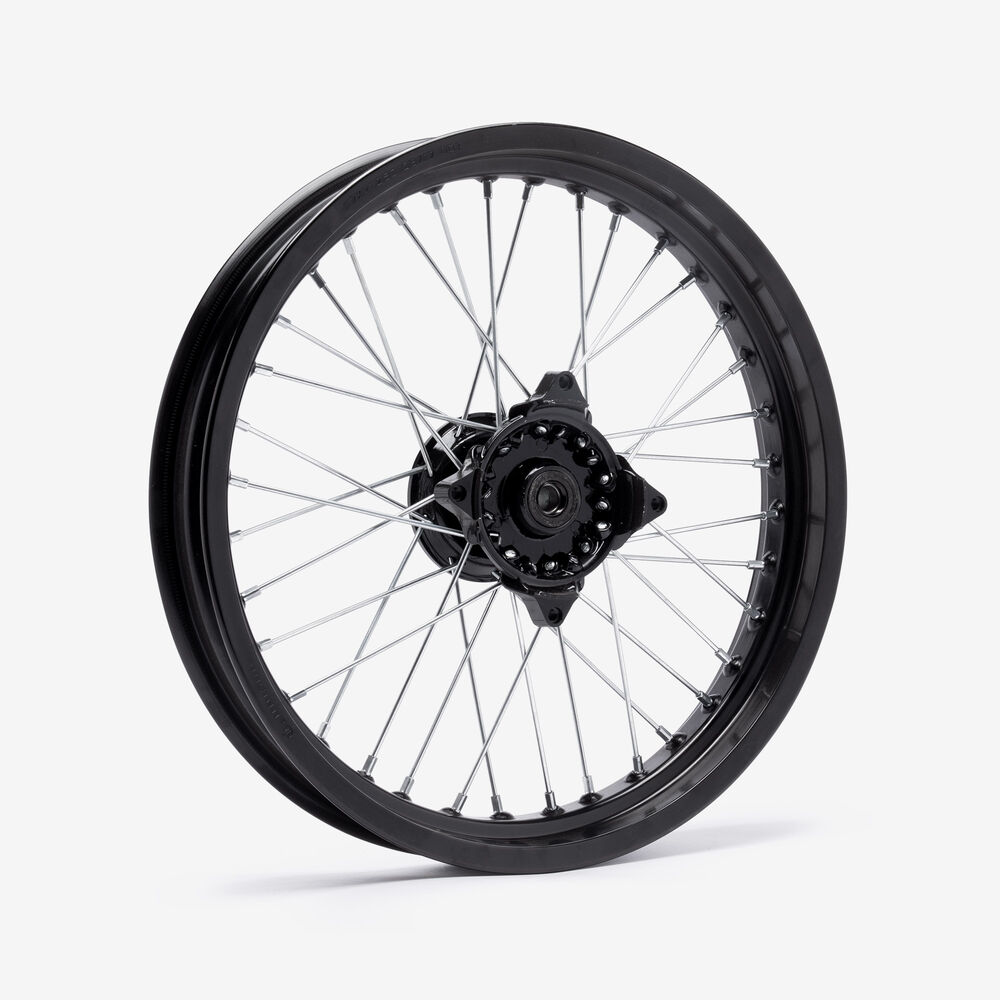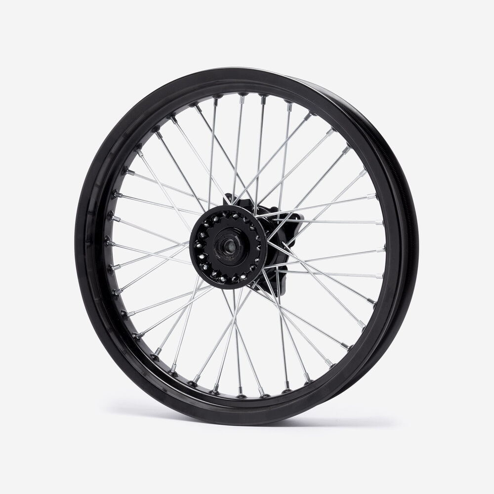 A motorcycle wheel consists of several key components: