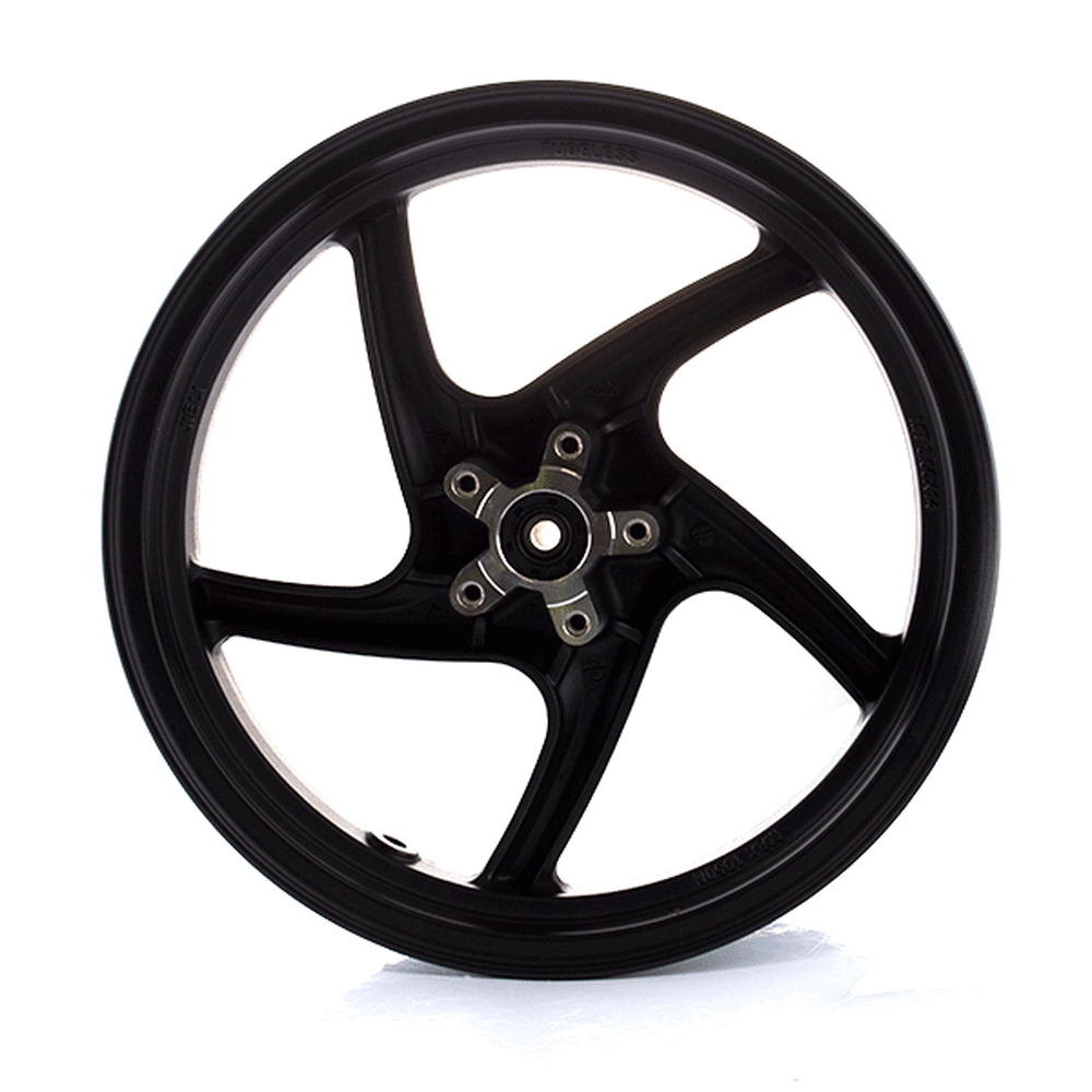 A motorcycle wheel consists of several key components: