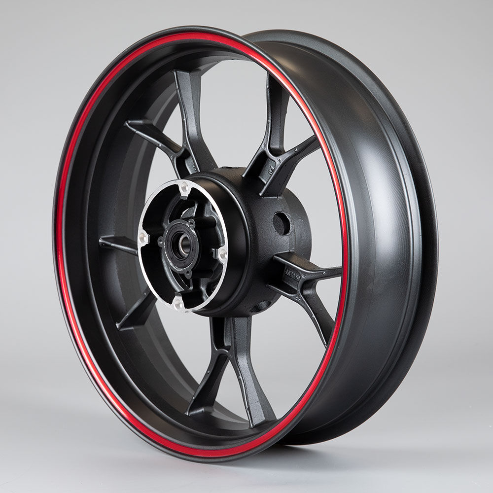 Hub: The central part of the wheel that contains the axle and often houses the bearings. It connects the wheel to the motorcycle's suspension and drivetrain.