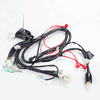A motorcycle wiring loom, also known as a wiring harness, is a bundle of wires and connectors that transmits electrical power and signals throughout the motorcycle. It organizes and protects the electrical wiring, ensuring connections between components such as the ignition system, lighting, and various sensors. The loom is typically wrapped in protective sheathing to guard against wear and damage, and is designed to streamline installation and maintain a neat, efficient electrical system.