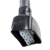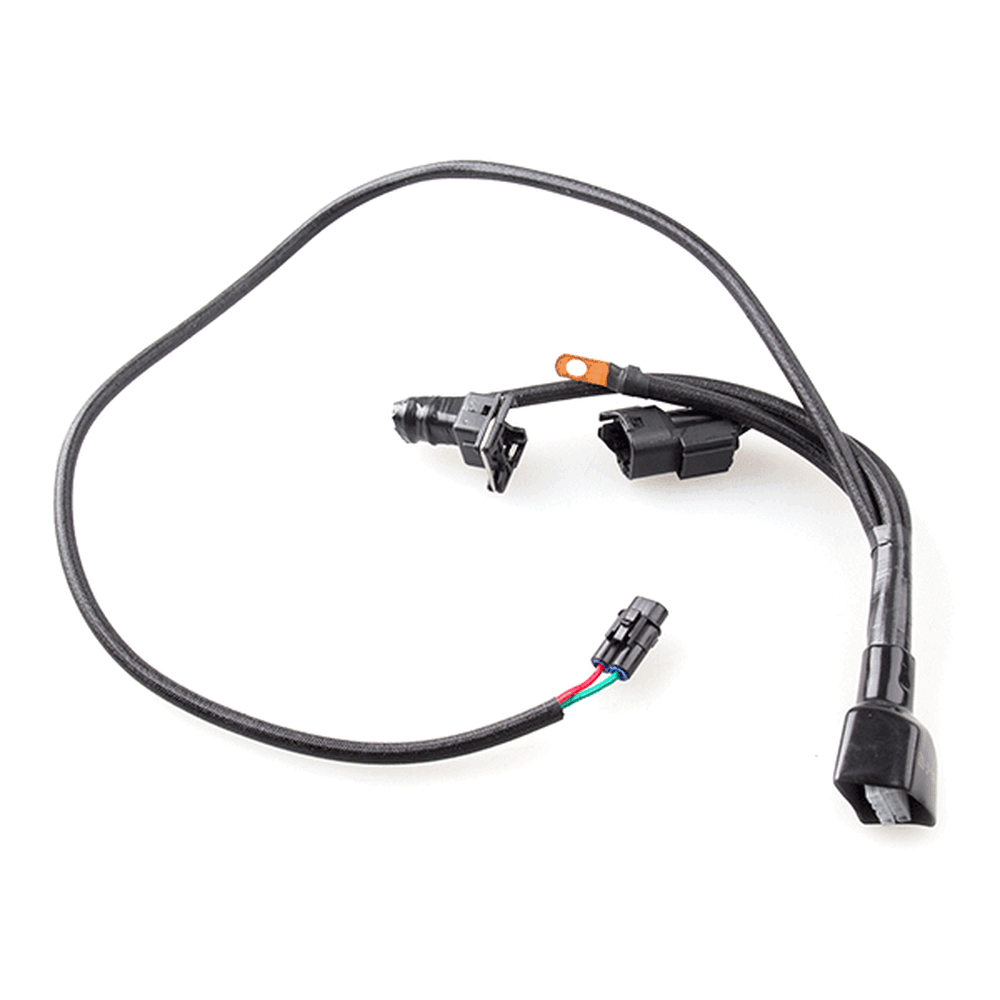 A motorcycle wiring loom, also known as a wiring harness, is a bundle of wires and connectors that transmits electrical power and signals throughout the motorcycle. It organizes and protects the electrical wiring, ensuring connections between components such as the ignition system, lighting, and various sensors. The loom is typically wrapped in protective sheathing to guard against wear and damage, and is designed to streamline installation and maintain a neat, efficient electrical system.