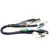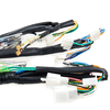 A motorcycle wiring loom, also known as a wiring harness, is a bundle of wires and connectors that transmits electrical power and signals throughout the motorcycle. It organizes and protects the electrical wiring, ensuring connections between components such as the ignition system, lighting, and various sensors. The loom is typically wrapped in protective sheathing to guard against wear and damage, and is designed to streamline installation and maintain a neat, efficient electrical system.