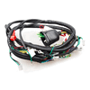 A motorcycle wiring loom, also known as a wiring harness, is a bundle of wires and connectors that transmits electrical power and signals throughout the motorcycle. It organizes and protects the electrical wiring, ensuring connections between components such as the ignition system, lighting, and various sensors. The loom is typically wrapped in protective sheathing to guard against wear and damage, and is designed to streamline installation and maintain a neat, efficient electrical system.