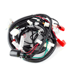 A motorcycle wiring loom, also known as a wiring harness, is a bundle of wires and connectors that transmits electrical power and signals throughout the motorcycle. It organizes and protects the electrical wiring, ensuring connections between components such as the ignition system, lighting, and various sensors. The loom is typically wrapped in protective sheathing to guard against wear and damage, and is designed to streamline installation and maintain a neat, efficient electrical system.