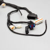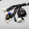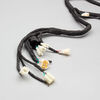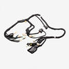 A motorcycle wiring loom, also known as a wiring harness, is a bundle of wires and connectors that transmits electrical power and signals throughout the motorcycle. It organizes and protects the electrical wiring, ensuring connections between components such as the ignition system, lighting, and various sensors. The loom is typically wrapped in protective sheathing to guard against wear and damage, and is designed to streamline installation and maintain a neat, efficient electrical system.