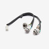 A motorcycle wiring loom, also known as a wiring harness, is a bundle of wires and connectors that transmits electrical power and signals throughout the motorcycle. It organizes and protects the electrical wiring, ensuring connections between components such as the ignition system, lighting, and various sensors. The loom is typically wrapped in protective sheathing to guard against wear and damage, and is designed to streamline installation and maintain a neat, efficient electrical system.